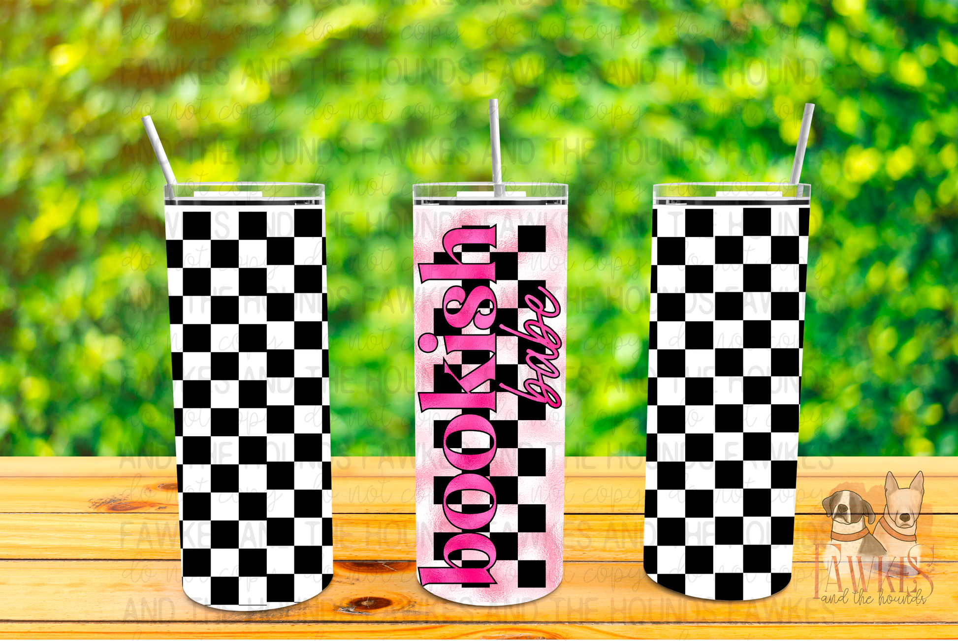 Pink and checkerboard collide for this edgy tumbler design for the babes.