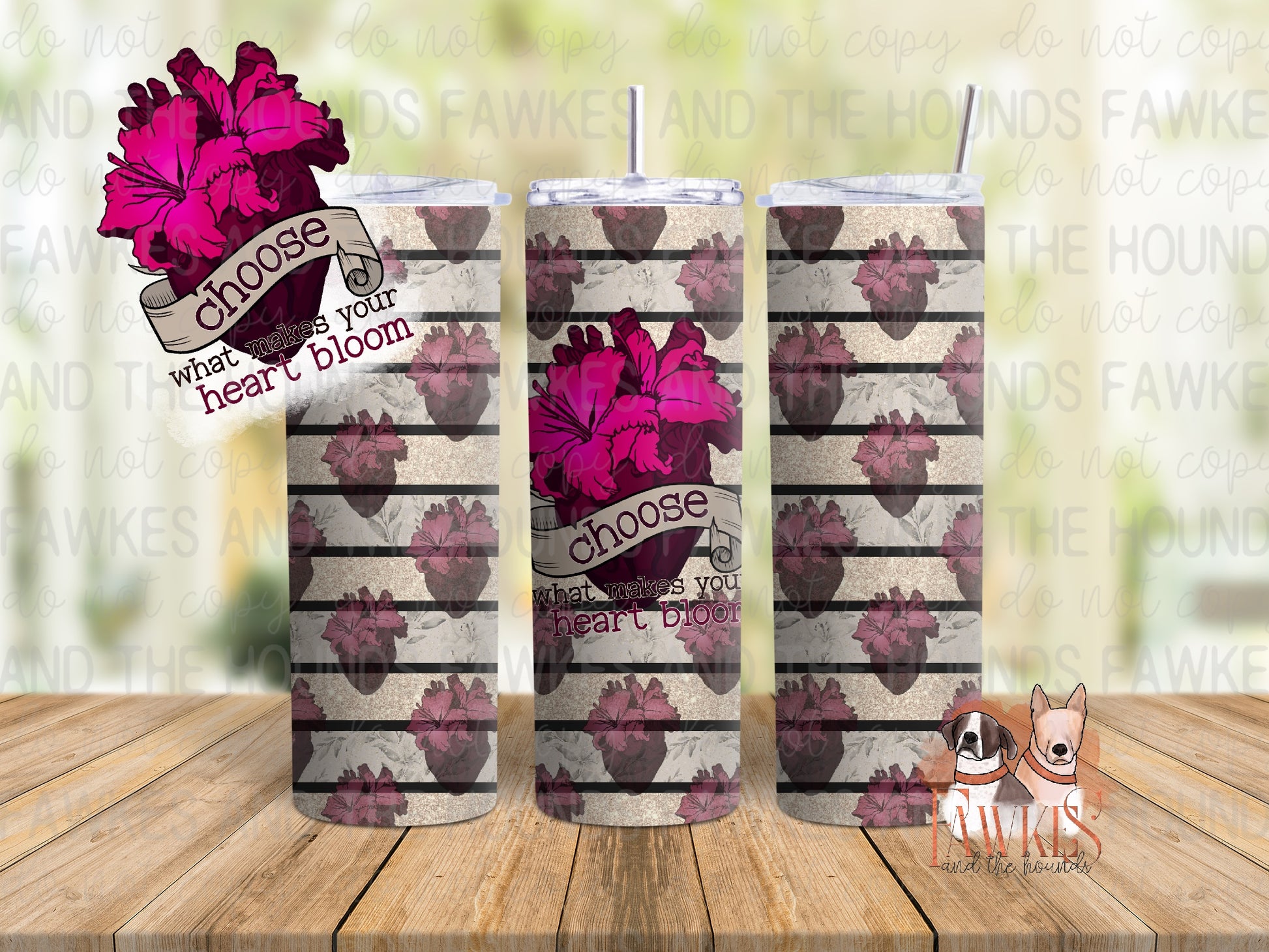 Heart Bloom Striped Tumbler Wrap
